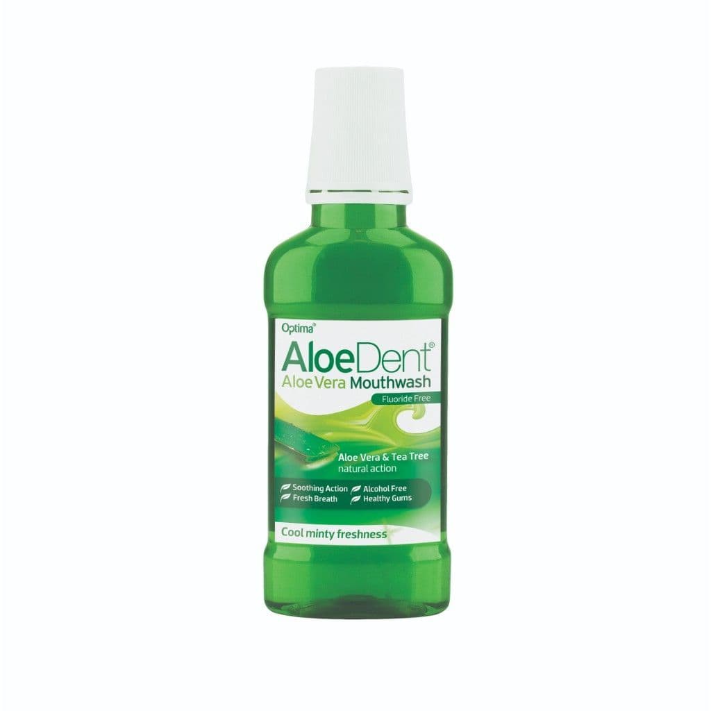 Description: Our mouthwash is alcohol free and fluoride free with a natural mint taste. Regular use of AloeDent toothpaste and mouthwash may help reduce bacteria, which can cause plaque, tartar and bad breath.
