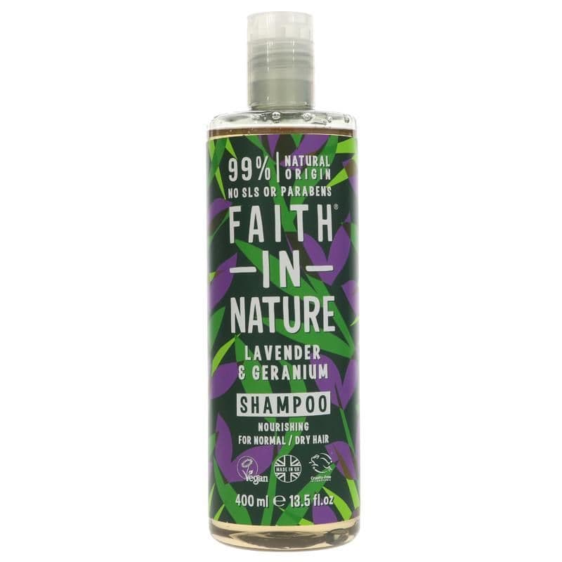 Description: This shampoo blends lavender lavandin geranium essential oils and anthocyanin (a powerful antioxidant from grape skin) to nourish your hair and relax your senses. 100% natural fragrance with essential oils. Free from parabens and SLS. Vegan and cruelty-free. 99% natural origin Directions: Massage gently into wet hair rinse well and repeat if required. For best results follow with our lavender & geranium conditioner. In case of contact with eyes rinse with clean water immediately. If irritation occurs stop use. Keep out of reach of children
