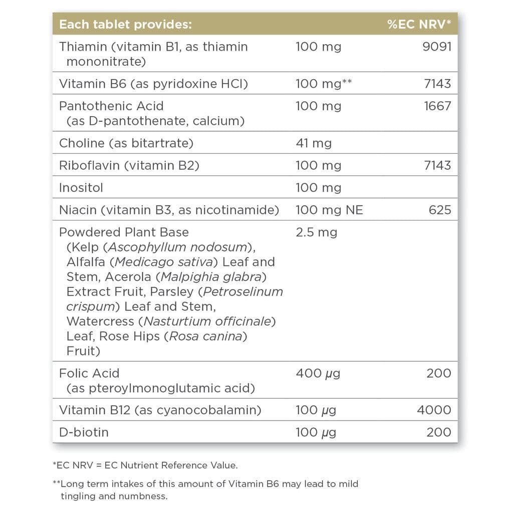 Solgars unique formula delivers Thiamine (B1), Riboflavin (B2), Niacin (B3), Pantothenic Acid (B5), and Vitamin B6, along with other B vitamins such as Folic Acid, Biotin (B7) and Vitamin B12. B vitamins are essential nutrients required by the body. They help our bodies convert food into energy, allowing us to stay energised throughout the day, as well as supporting our mental performance.